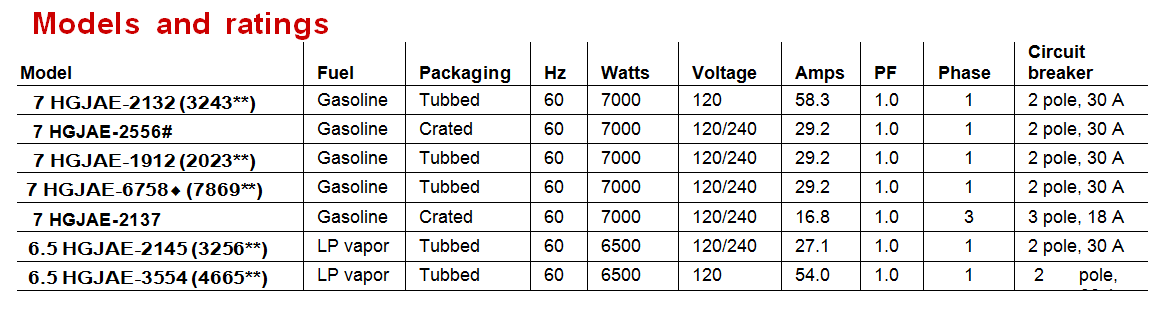 -Ratings apply up to 3000 ft (914 m) altitude, 85° F (29.4° C).