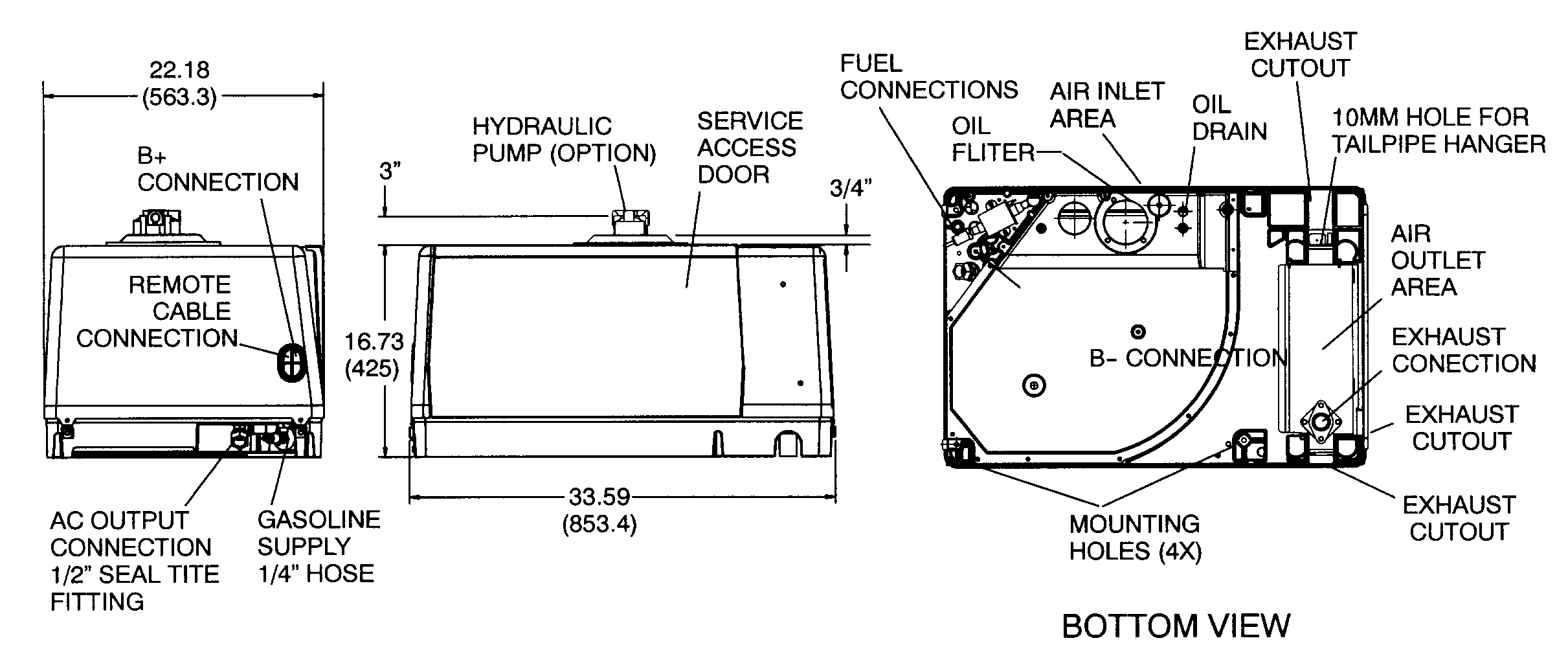 Generator weight does not include battery charger or splined shaft.